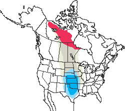 Harris's Sparrows leave the nesting area by early September and travel slowly to wintering grounds, arriving mostly in November. They winter in the central Great Plains region from South Dakota to Texas. They start moving north at the end of February, but the bulk of the population doesn't arrive on the breeding grounds until late April or early May.