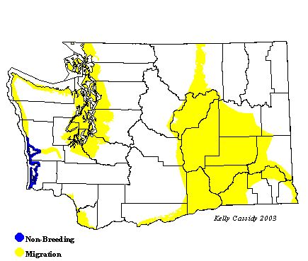 Semipalmated Plovers migrate through Washington from mid-April to mid-May, and from July through September. Small numbers regularly winter on the outer coast north to southern British Columbia. Breeding is rare in Washington, but it has occurred at Damon Point. Non-breeding birds occasionally summer on the coast. Semipalmated Plovers are uncommon migrants in the interior part of the state.