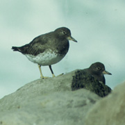Surfbirds occur in small flocks, usually with fewer than 25 birds, and are almost always seen in Washington with Black Turnstones. They are also seen with Rock Sandpipers, Wandering Tattlers, and occasionally Ruddy Turnstones. The Surfbird's bill is well adapted to prying food off rocks.