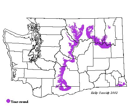 White-headed Woodpeckers are uncommon and local in the Ponderosa-pine forests of the eastern Cascades. They are most easily located in Yakima and Klickitat Counties. They are also uncommon east of the Okanogan River and occur rarely in some areas of the Blue Mountains. Specific sites where White-headed Woodpeckers may be found include the Wenas Campground (Yakima County), the Yakama Indian Reservation (Yakima County; no public access), Little Pend Oreille National Wildlife Refuge (Stevens County), Long Lake Dam (Lincoln/Stevens County), and Fields Spring State Park in the Blue Mountains (Asotin County).